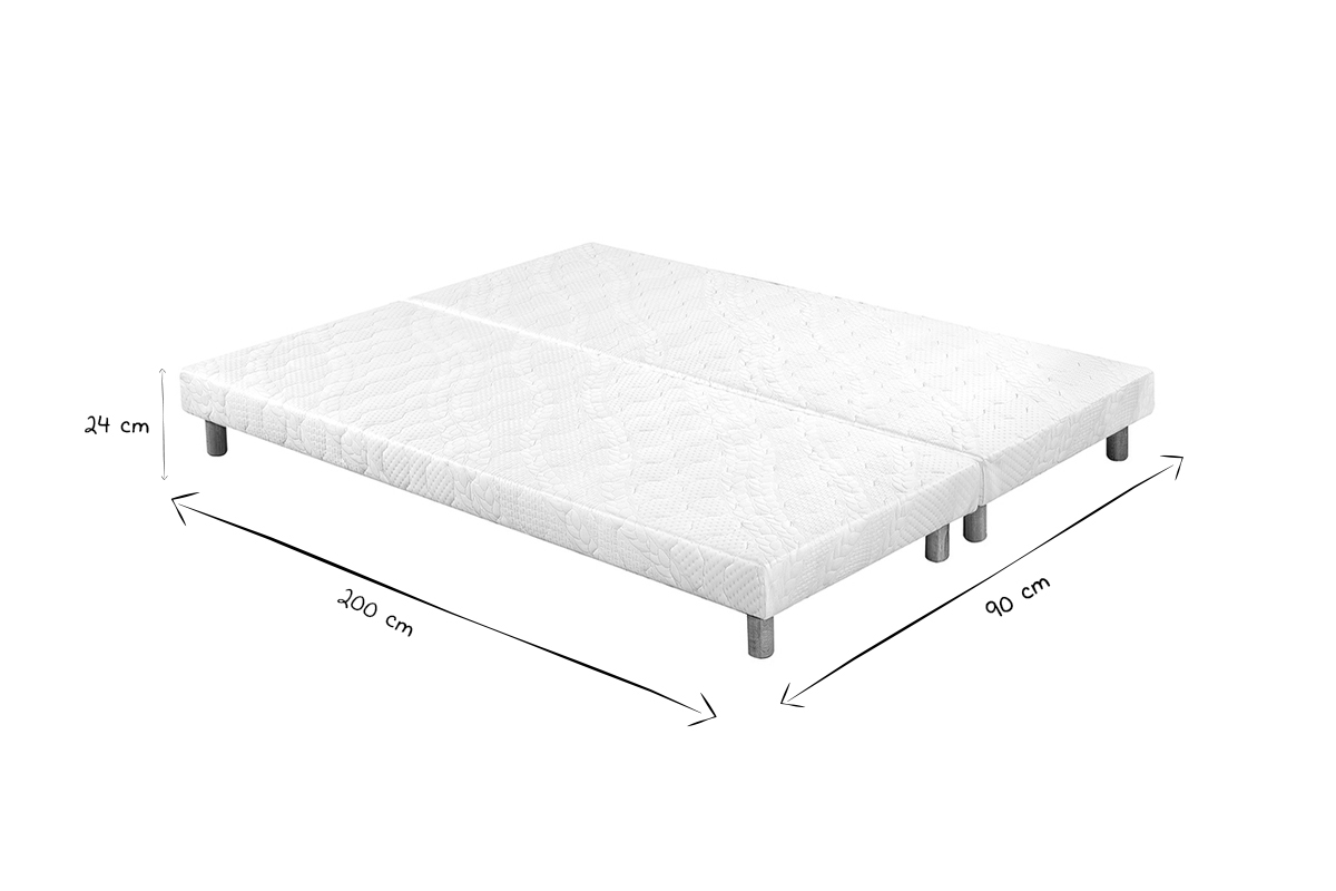 Questo set composto da due basi (90 x 200 cm) può essere abbinato a un materasso 180 x 200 cm (venduto separatamente) come il nostro materasso memory foam OLIVER. Questa base divisa in due parti facilita il trasporto e la sistemazione del letto.