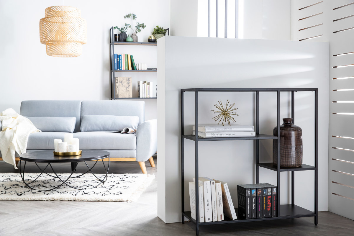 Grazie alle sue dimensioni (L79,5 x P30 x H86 cm), la console PODIUM si inserisce facilmente in tutte le stanze della casa. Le mensole di diverso formato permettono di approfittare di uno spazio adatto ai propri bisogni: scatole, libri, vasi, scarpe... Potete sistemarvi ciò che volete. Il metallo di cui è fatto il mobile è un materiale apprezzato per la sua solidità.