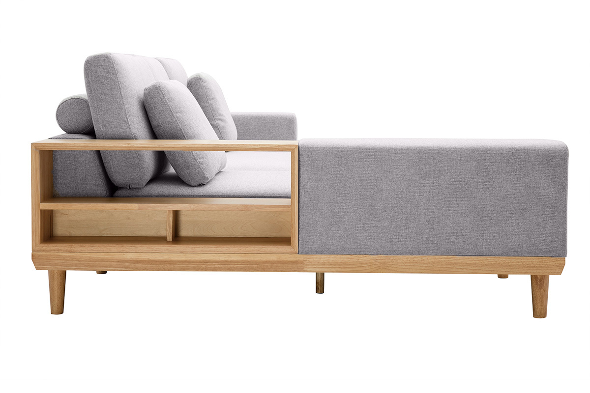 Poiché i mobili Japandi sono iperfunzionali, questo divano angolare è dotato di due mensole integrate. Questi ingegnosi contenitori sono perfetti per riporre libri e telecomandi e tenerli a portata di mano.