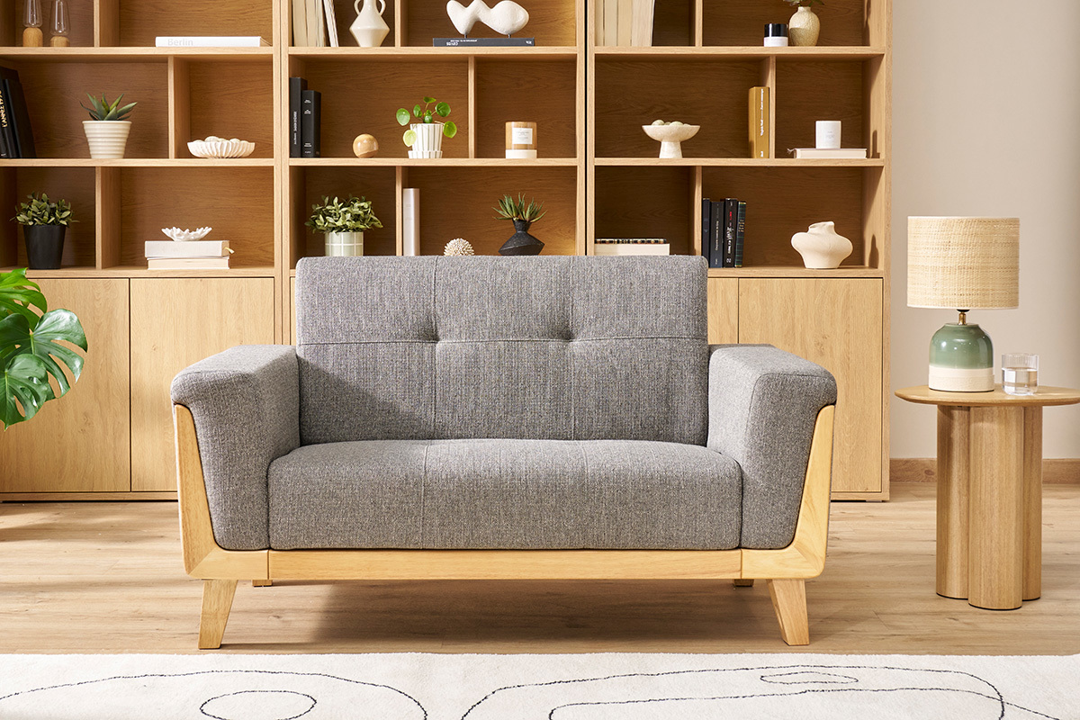 Divano scandinavo 2 posti grigio chiaro e base legno FJORD