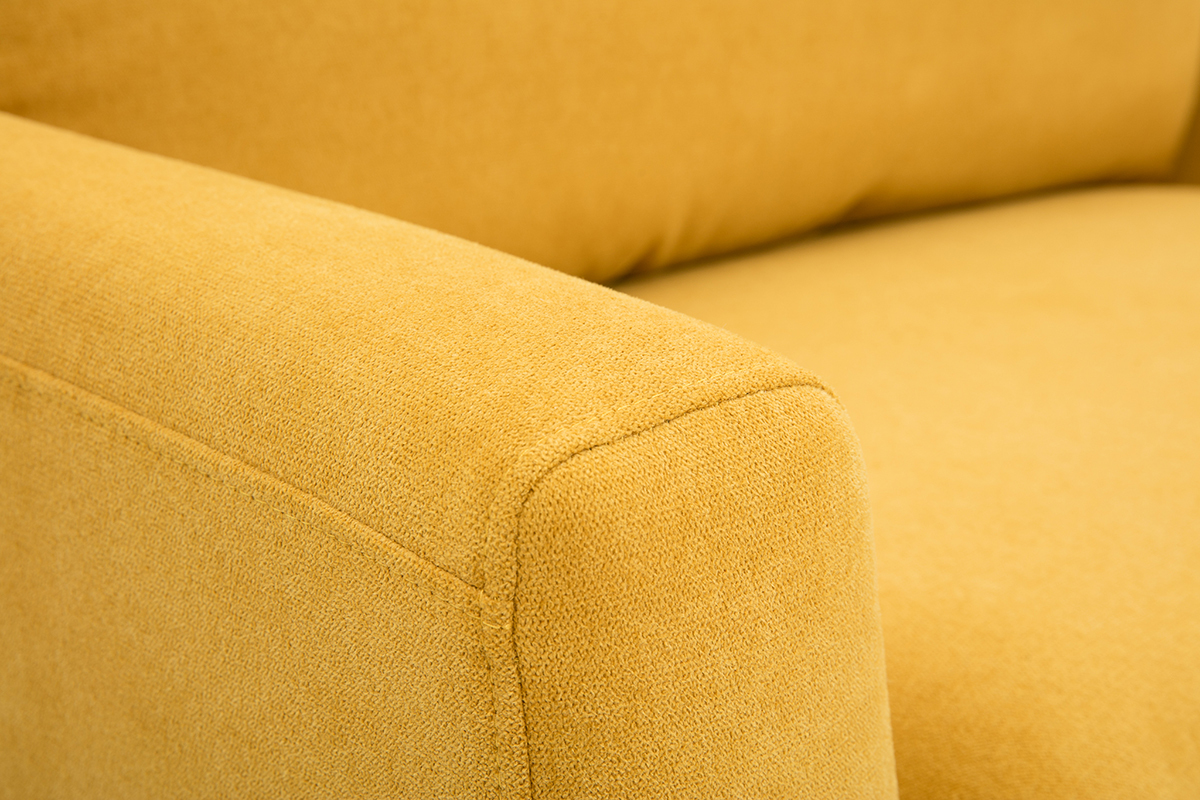 JONAS è un soffice divanetto, ideale per un salotto accogliente. Le sue linee semplici e il colore giallo senape lo rendono un mobile senza tempo che si adatta a svariati stili di arredo. Per un salotto accogliente, sarà perfetto abbinato ad un tavolino da salotto in legno. Le sue dimensioni ridotte (L129 x P81 x H82,5 cm) non occupano troppo spazio e possono ospitare 2 persone.