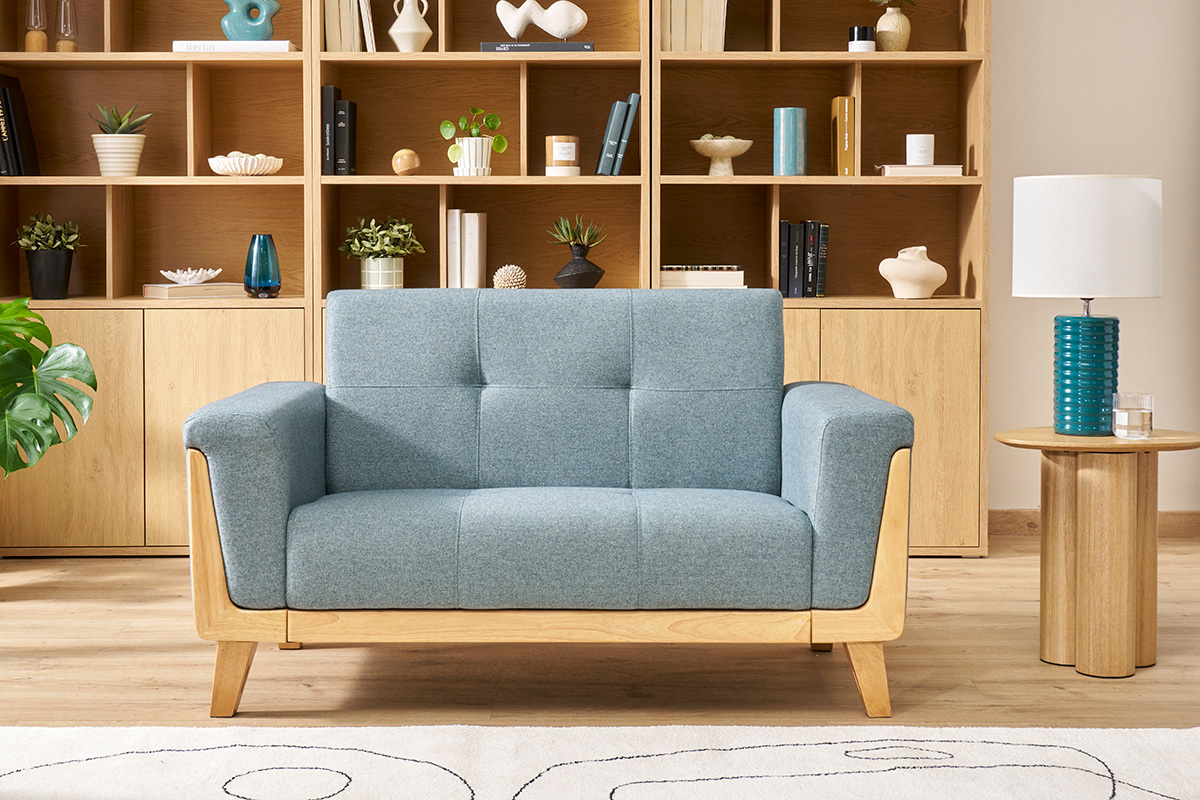 In contrasto con i bei riflessi biondi del legno, questo piccolo divano 2 posti è rivestito in uno splendido tessuto grigio-verde dalla finitura capitonné. Intenso e infinitamente trendy, questo rivestimento conferisce a FJORD una nota di calore.