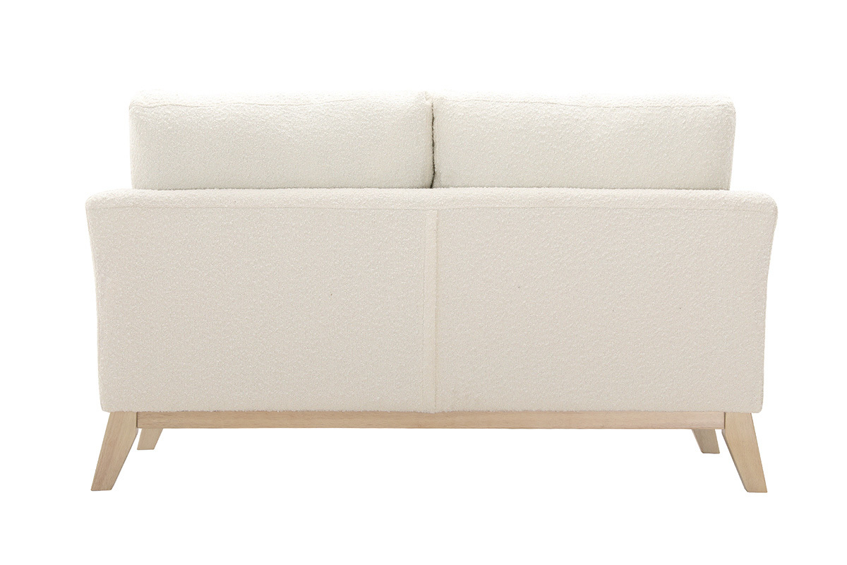 Con il suo rivestimento bianco in tessuto effetto lana bouclé , la base in legno massello di hevea, il design dalle linee epurate, questo piccolo divano è di chiara ispirazione nordica.