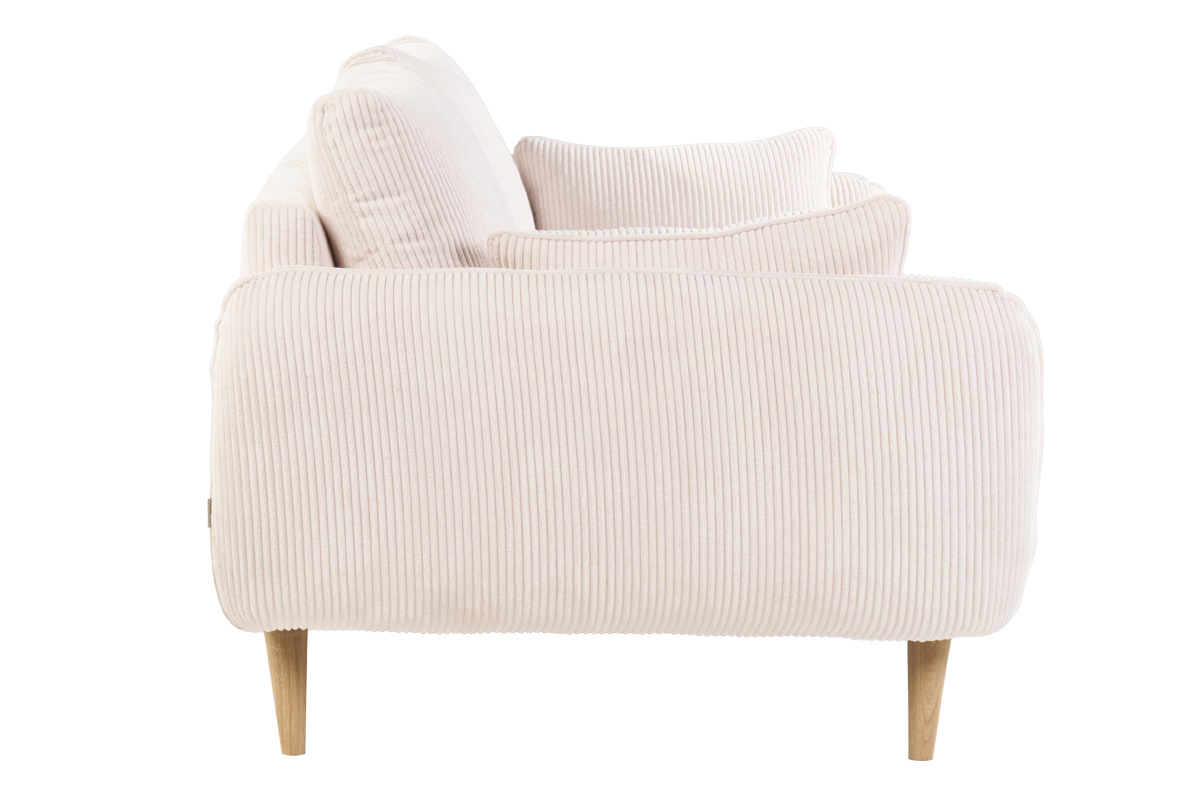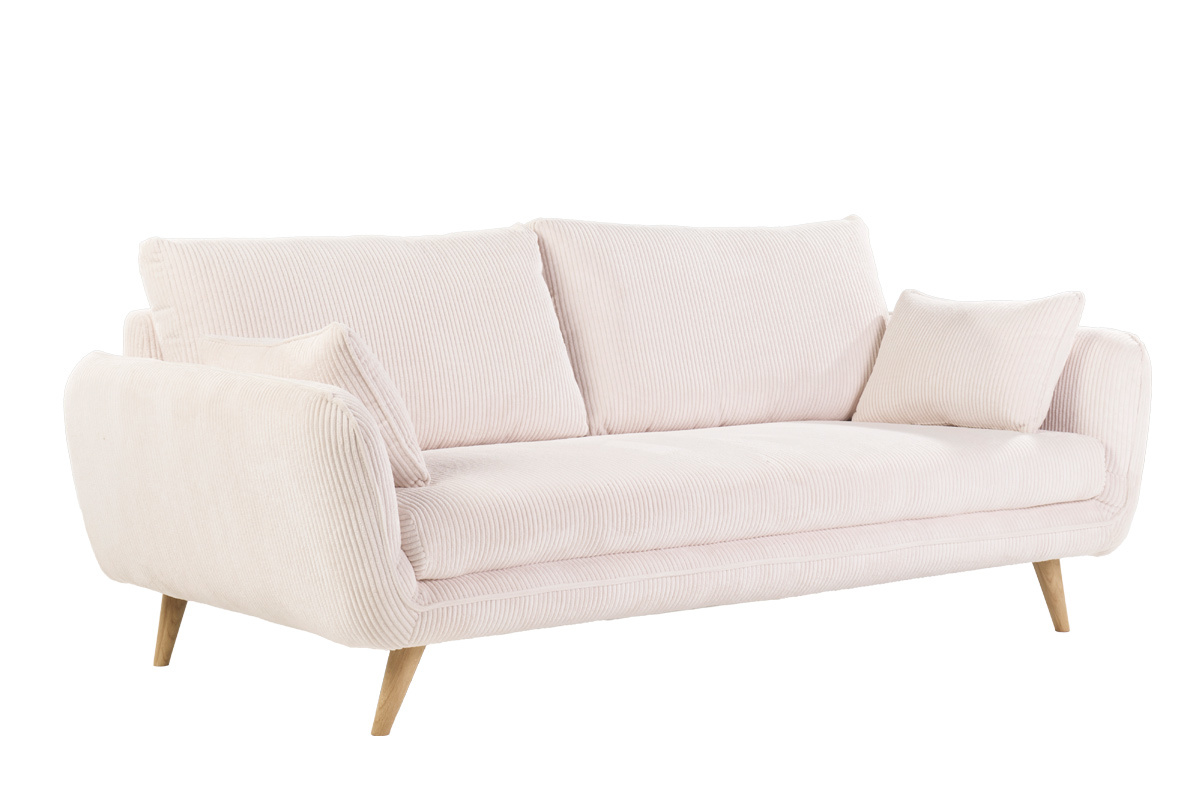 Divano in velluto a coste consegnato in kit di montaggio. Cuscini aggiuntivi inclusi.