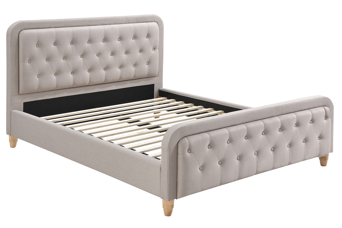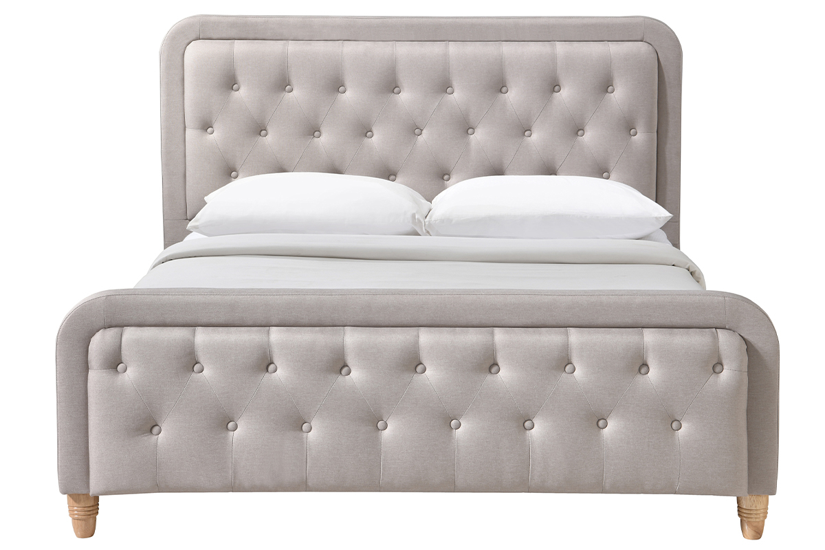 Il rivestimento in poliestere, di facile manutenzione, è estremamente soffice al tocco. I piedi in legno arrotondati, ricchi di dettagli, sono la ciliegina sulla torta delle finiture di questo letto.