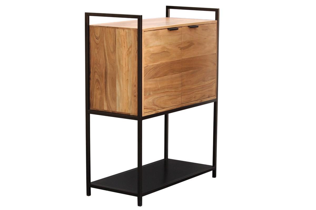Estremamente versatile, questamadia (L85 x P40 x H110 cm) si adatta a qualsiasi ambiente, in un soggiorno dagli arredi vintage, in un ingresso o in una camera da letto. La fine struttura sostiene un mobile contenitore in legno massello di acacia (L77 x P36 x H47 cm) che si apre con maniglie sottili, e un ripiano in metallo nero. Le linee grafiche e aeree della struttura in metallo nero le conferiscono grande leggerezza e ariosità.