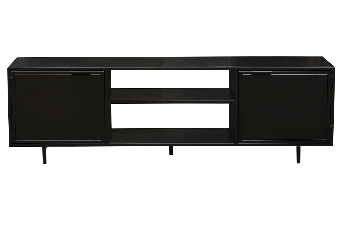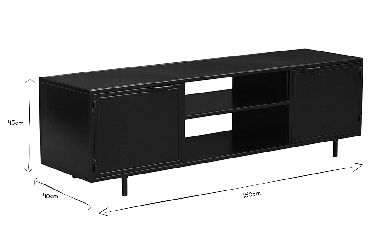 Coniugare estetica e praticità con eleganza: una sfida vinta per questo mobile TV in metallo! Sostenuto da una discreta base in metallo, fine e purtuttavia resistente, il mobile offre una grande capienza. Perfetti per organizzare l'angolo TV, i due ampi vani laterali chiusi da ante a battente e le due nicchie centrali aperte permettono di sistemare dispositivi digitali, box, videogiochi...