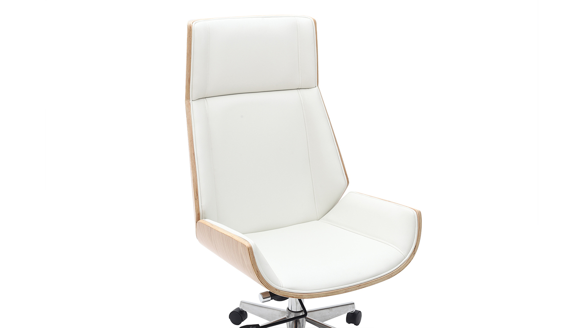 L'eleganza dello stile contemporaneo e il calore del legno sono stati combinati per rendere la sedia da ufficio regolabile CURVED una sedia unica e confortevole. Questa grande sedia da ufficio, con le sue linee moderne e il suo design elegante, donerà all'ufficio un' ispirazione contemporanea o scandinava. Se il suo schienale alto, seduta ampia e stella metallo di base ricorda le sedie classiche, la sua struttura in legno chiaro e seduta in poliuretano bianco donano un tocco di originalità e stile all'insieme. Grazie allo schienale alto 69,5 cm e alla seduta curva, la poltrona di design CURVED offre un confort ottimale. È inoltre dotato di una maniglia sotto il sedile per regolarne l'altezza. Le cinque ruote che completano la sua base consentono una forte mobilità. Approfitta di uno spazio di lavoro perfettamente adattato alle tue esigenze. Crea una scrivania pratica e funzionale combinando la sedia da ufficio CURVED regolabile con la scrivania regolabile laccata bianca MAX. Questa sedia è disponibile anche in legno scuro / versione nera ed è pronta per essere assemblata.