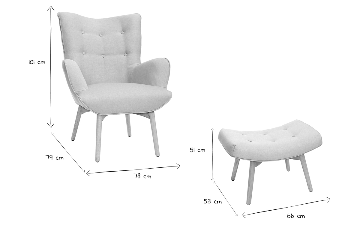 Scelga uno stile deciso con la magnifica poltrona design scandinava con poggiapiedi e legno chiaro BRISTOL.