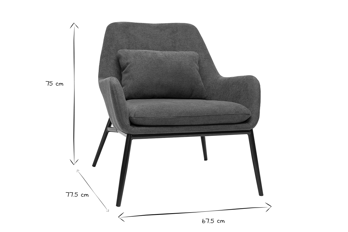 Studiata per essere unelemento d'arredo moderno e di tendenza, la poltrona MAXINE, con la sua elegante linea contemporanea, è impreziosita dal rivestimento in tessuto effetto velluto grigio scuro e dalla base in metallo nero. Vero e proprio elemento di arredo, questa poltrona è perfettamente in linea con lo stile attuale. Colore sobrio e una silhouette design sono un'accoppiata vincente!