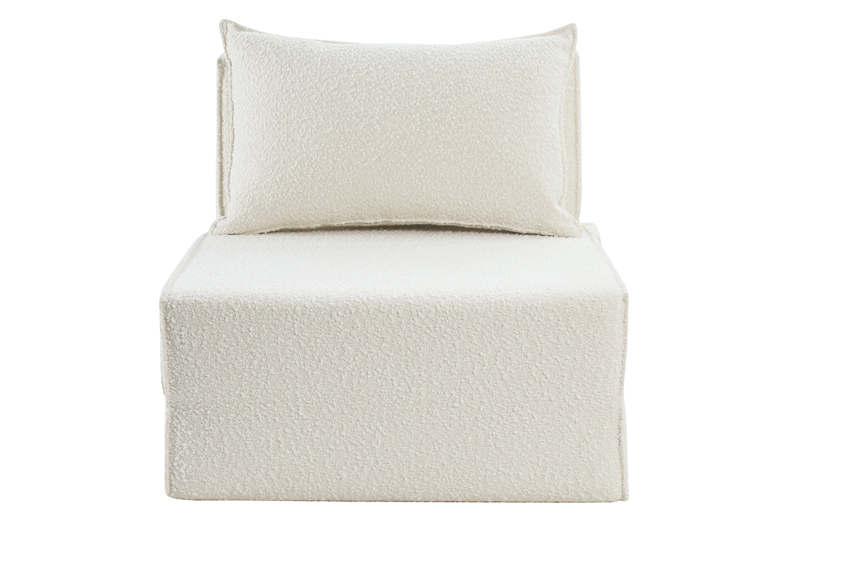 linee nette e curve armoniose: questa poltrona letto design in tessuto lana bouclé bianco unisce eleganza e sobrietà. Moderno e classico al tempo stesso, intramontabile ed attuale, lo stile unico di VICTOR è perfetto per arredamenti contemporanei e senza tempo.