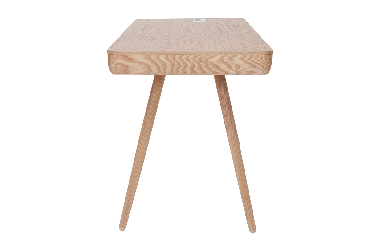 La base slanciata e il ripiano in legno massello di frassino gli conferiscono un aspetto caldo e autentico.