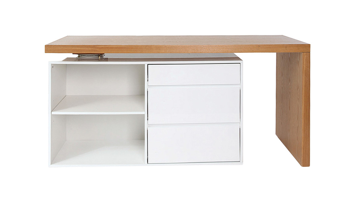 Delle rotelle nascoste nel ripiano permettono girare facilmente la scrivania.