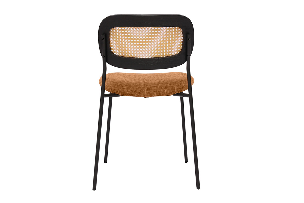 Le sedie MIRANDA, con il loro design curato e le sedute in tessuto effetto velluto testurizzato terracotta, incarnano l'eleganza e il comfort per valorizzare qualsiasi spazio abitativo. Ideali per la sala da pranzo, uniscono stile contemporaneo e ispirazioni naturali, creando un'atmosfera calda e accogliente. Lo schienale in intreccio di rattan aggiunge un tocco artigianale e autentico, richiamando le tendenze moderne pur apportando un tocco chic retrò. Questa combinazione unica di materiali le rende una scelta ideale per gli interni alla ricerca di originalità e personalità.