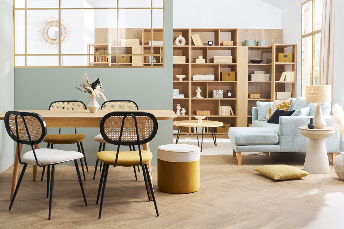 Per riunirsi con la famiglia o gli amici e trascorrere del tempo a tavola, queste sedie in paglia di Vienna, tessuto bouclé écru e metallo nero si abbinano perfettamente a un tavolo da pranzo in legno: effetto garantito in zona pranzo!