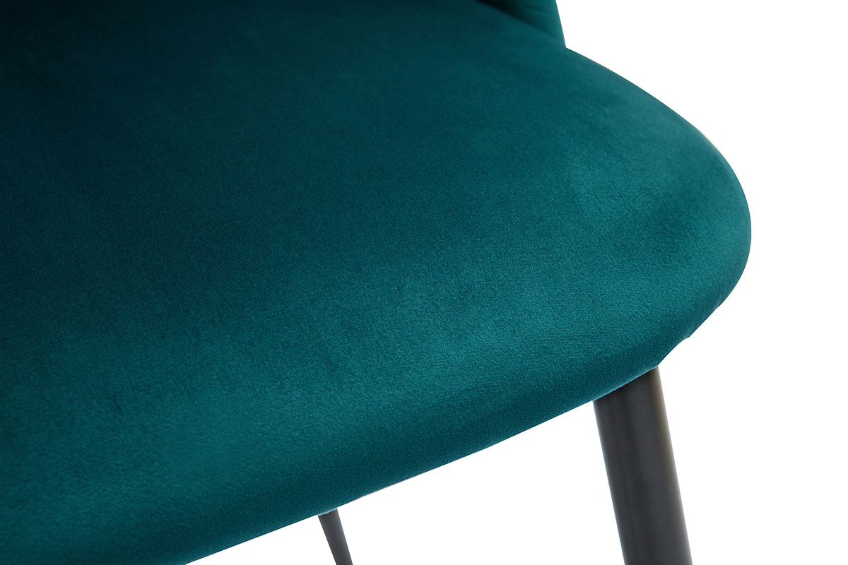 Rivestimento in velluto blu petrolio, base in metallo nero, linee arrotondate: le sedie CELESTE riflettono tutto il fascino dello stile contemporaneo.