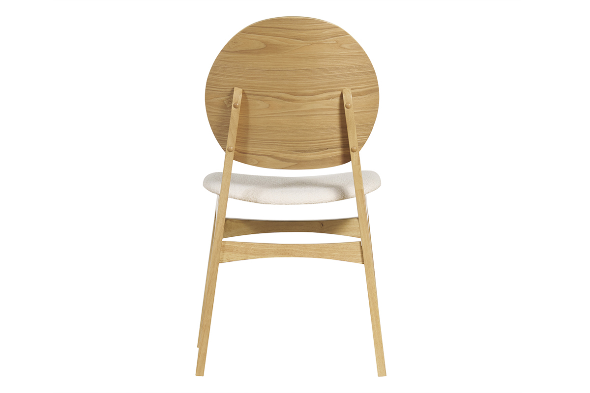 La struttura impiallacciata in frassino è composta da uno schienale leggermente curvo per adattarsi alla forma della schiena, il tutto sostenuto da una base in legno massello di hevea dalle curve sinuose, vera garanzia di stabilità.