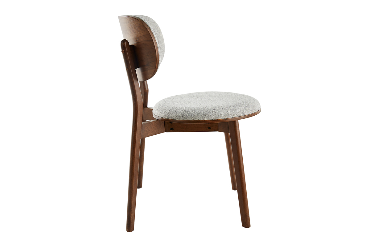 Con il loro delicato stile vintage, le sedie FAUVETTE si integrano naturalmente negli ambienti che puntano sull'autenticità. Splendido il contrasto tra il fascino rustico di una struttura in legno scuro (impiallacciatura in noce), con i suoi nodi, le marcate venature e le morbide sfumature dorate, e il tessuto grigio (100% poliestere) molto moderno ed attuale.