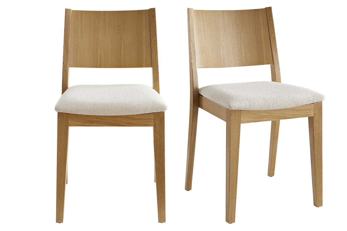 Un binomio impeccabile per queste sedie che amano il contrasto, combinando una struttura dalle linee epurate in legno chiaroa un elegante rivestimento in tessuto écru effetto lana bouclé. In linea con la passione per lo stile scandinavo, con i loro colori naturali queste sedie dal profilo armonioso conferiranno un'atmosfera intima e calda alla sala da pranzo.