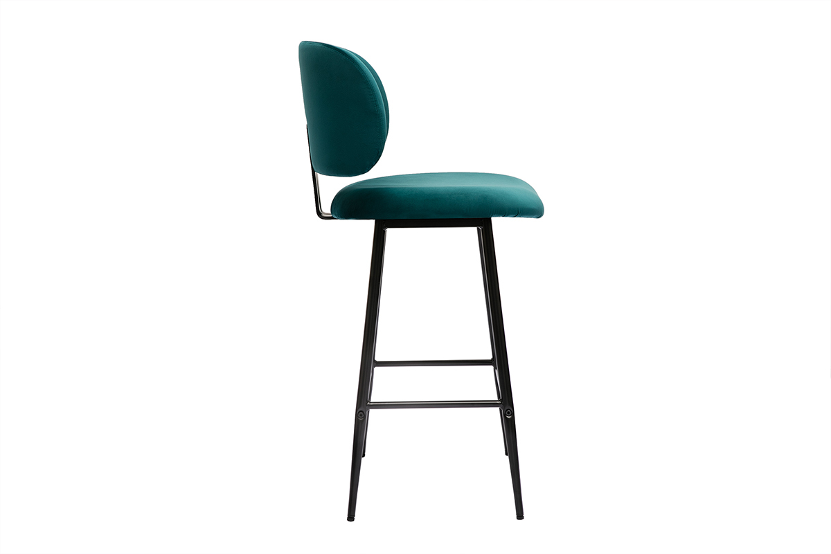 Sgabelli da bar in tessuto velluto blu petrolio e metallo nero H70 cmvenduti in set di 2. Montaggio semplice: solo i piedini devono essere fissati.