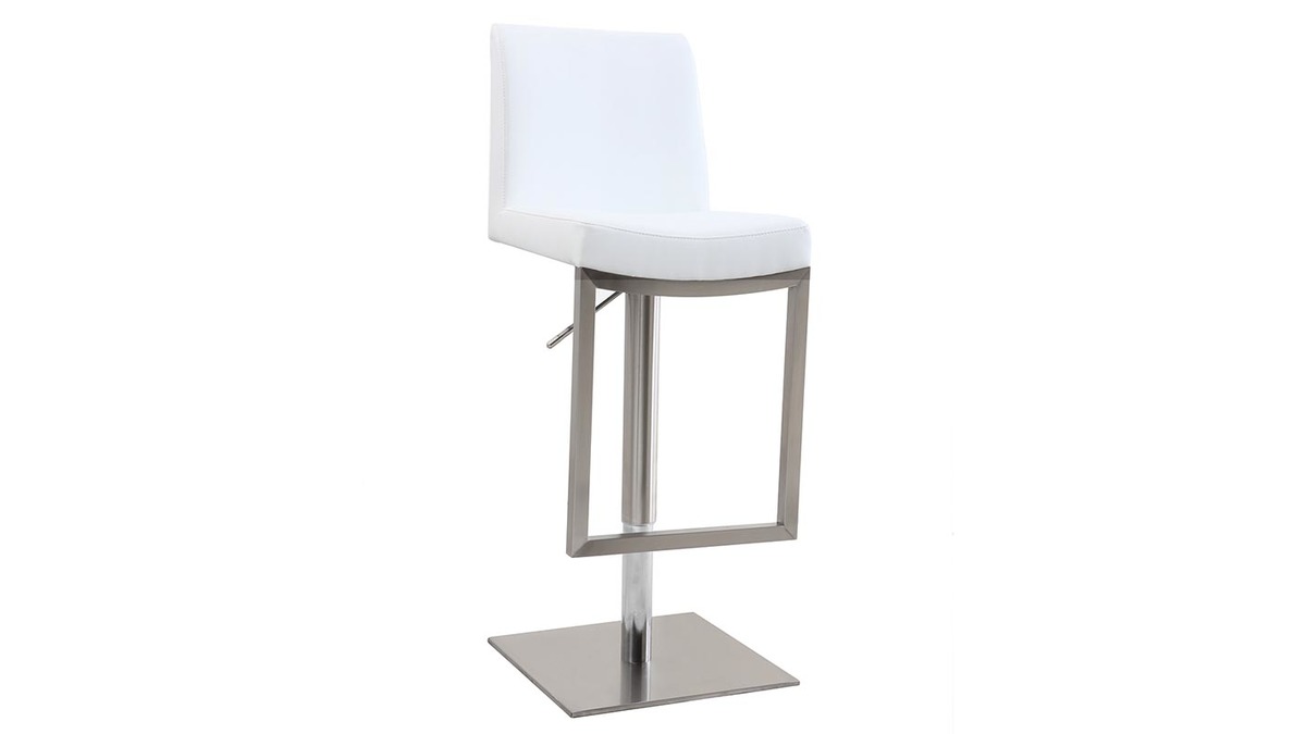 Lo sgabello da bar contemporaneo - metallo e PU bianco - KYLE sarà perfetto per un tavolo alto, un bar o un'isola da cucina. L'altezza della seduta può essere regolata da 60 a 85cm.