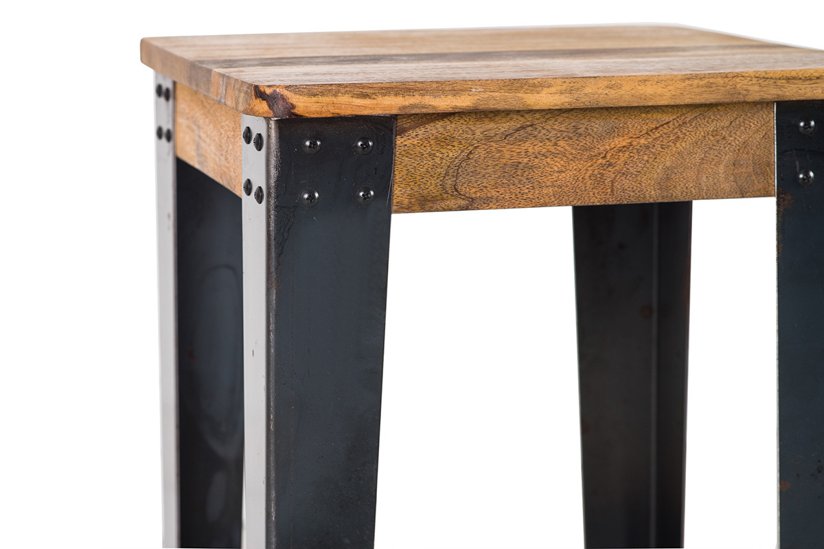 Avete voglia di un tocco loft newyorchese/Indo a casa vostra? Per accompagnare con stile una cucina o un?isola centrale, lo sgabello da bar industriale in acciaio e legno, dimensioni: 75 cm MADISON farà scalpore. Gli angoli, rinforzati da angolari rivettati, sostengono uno sgabello in legno di mango. Il legno di mango ha in modo naturale tonalità gialle/marroni, ed è un legno molto resistente che dura nel tempo, senza invecchiare. Questo sgabello di design, industriale, in acciaio e legno, dimensioni: 75 cm MADISON sarà perfetto per garantire uno spirito loft contemporaneo. Conferisce un tocco di design e di modernità che non conosce pari. E' stato realizzato con tecniche artigianali e non somiglia a nessun altro. Contrariamente alle tecniche industriali, il "fatto a mano" offre un risultato naturale e grezzo che fa tutto lo charme di questo mobile. Lo sgabello di design, industriale, in acciaio e legno, dimensioni: 75 cm MADISON si abbinerà alla perfezione col tavolo da bar della stessa collezione. Ritrovate anche lo sgabello da bar MADISON nella versione da 65 cm qui.