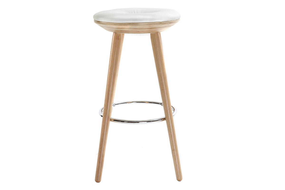 Raffinato, lo sgabello da bar è caratterizzato da una base molto fine in frassino e una seduta rotonda in poliuretano bianco. L'armonia dei due materiali fanno di questo sgabello un vero e proprio oggetto decorativo.
