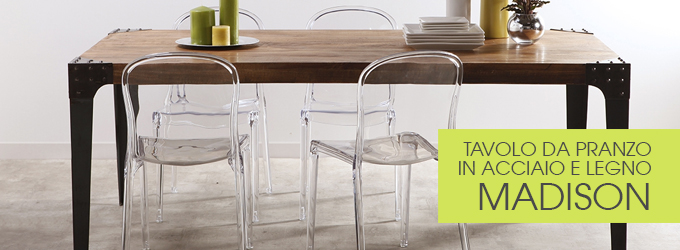 Con piano in vetro temperato o no,struttura in metallo o MDF, estensibile o fisso: troverà certamente il tavolo che cercava! Tutti i nostri tavoli hanno dei modelli di sedia assortiti.