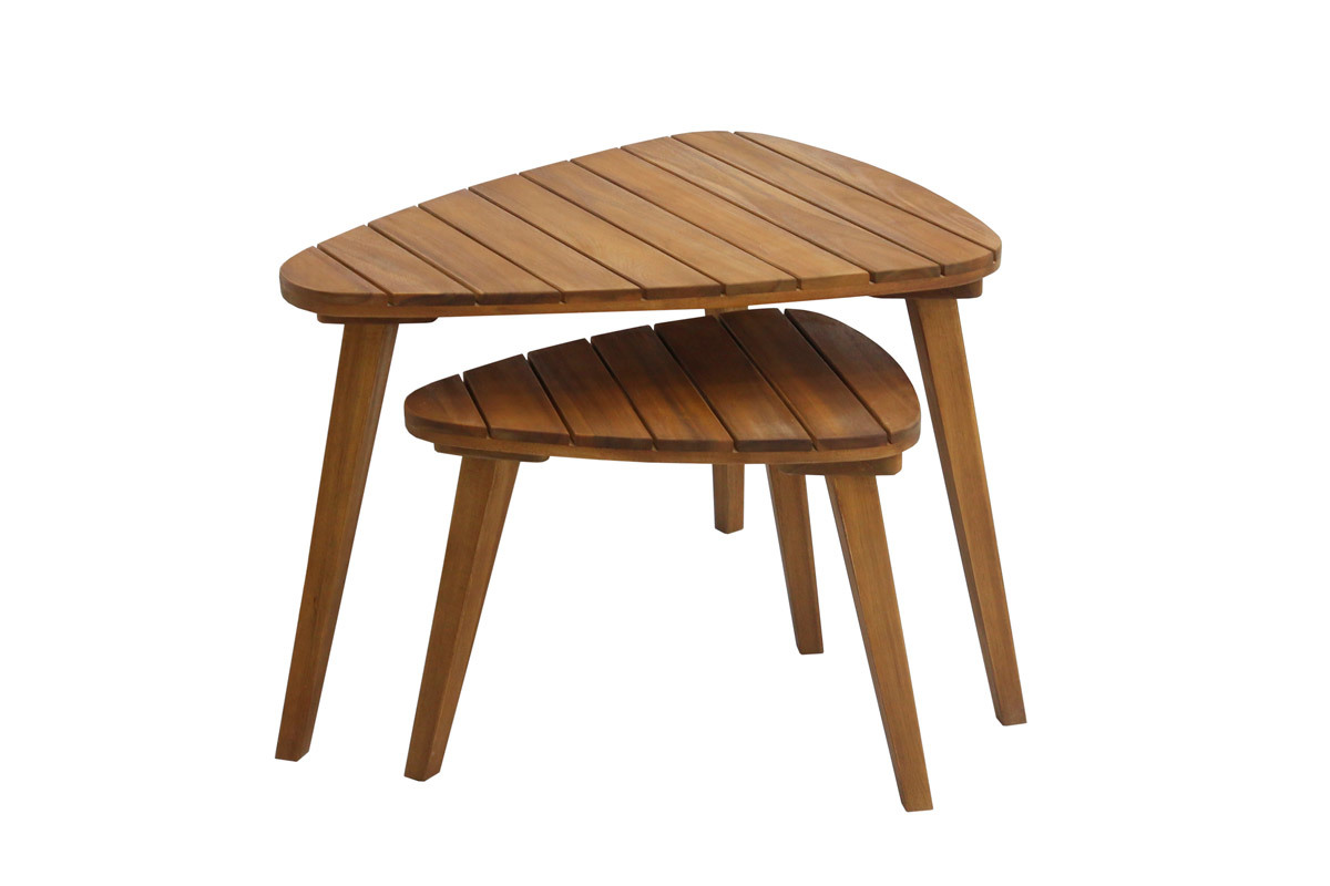 Minimo ingombro per il massimo effetto. Compatto, ma non per questo privo di praticità, questo set di 2 tavolini da salotto estraibili in legno massello, dalle dimensioni L66 x P53 x H45 cm e L46 x P37 x H35 cm, si adatta anche agli spazi più contenuti. Balcone o piccolo angolo di cielo, si può scegliere la praticità senza rinunciare allo stile.