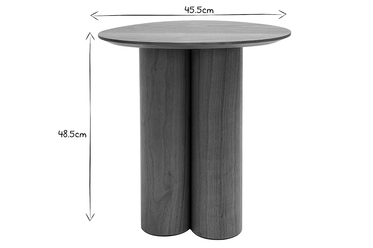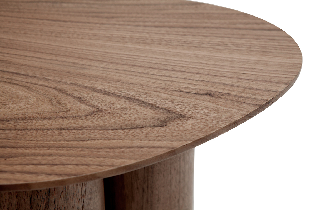 Con le sue dimensioni ridotte (L44,5 x P35,5 x H48,5 cm), questo originale tavolino da caffè aggiungerà fascino all'arredamento anche degli spazi abitativi più contenuti! Il ripiano ovale dalle morbide curve (L45,5 x L35,5 x S1,9) poggia su una base centrale formata da tre cilindri. La struttura in pannelli di fibra di legno con impiallacciatura in noce combina solidità e facilità di manutenzione.