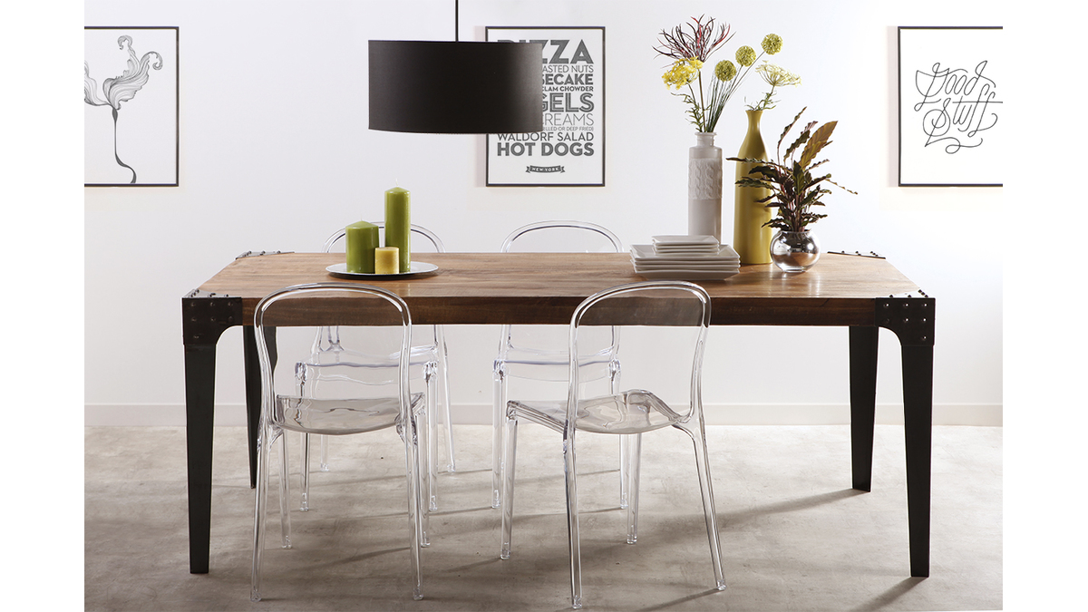 Di stile industriale questo tavolo da pranzo MADISON, associa l'acciaio e l'olmo per uno stile autentico e attuale.